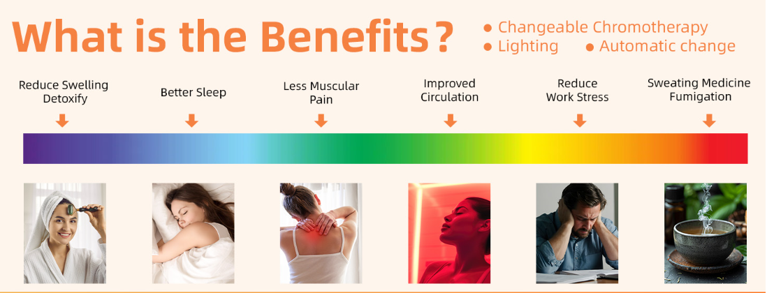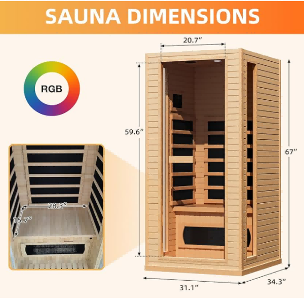 Il suo corpo compatto (di solito misura circa 100 × 80 × 190 cm) è adatto a piccoli spazi come case e appartamenti ed è facile da installare e collegare per l'uso. Equipaggiato internamente con panchine comode e progettazione di mesh traspiranti, accoppiato con un sistema di controllo della temperatura intelligente (intervallo di temperatura regolabile di 30-65 ℃), la durata può essere impostata in base alle esigenze (0-60 minuti), bilanciando la sicurezza e il comfort.