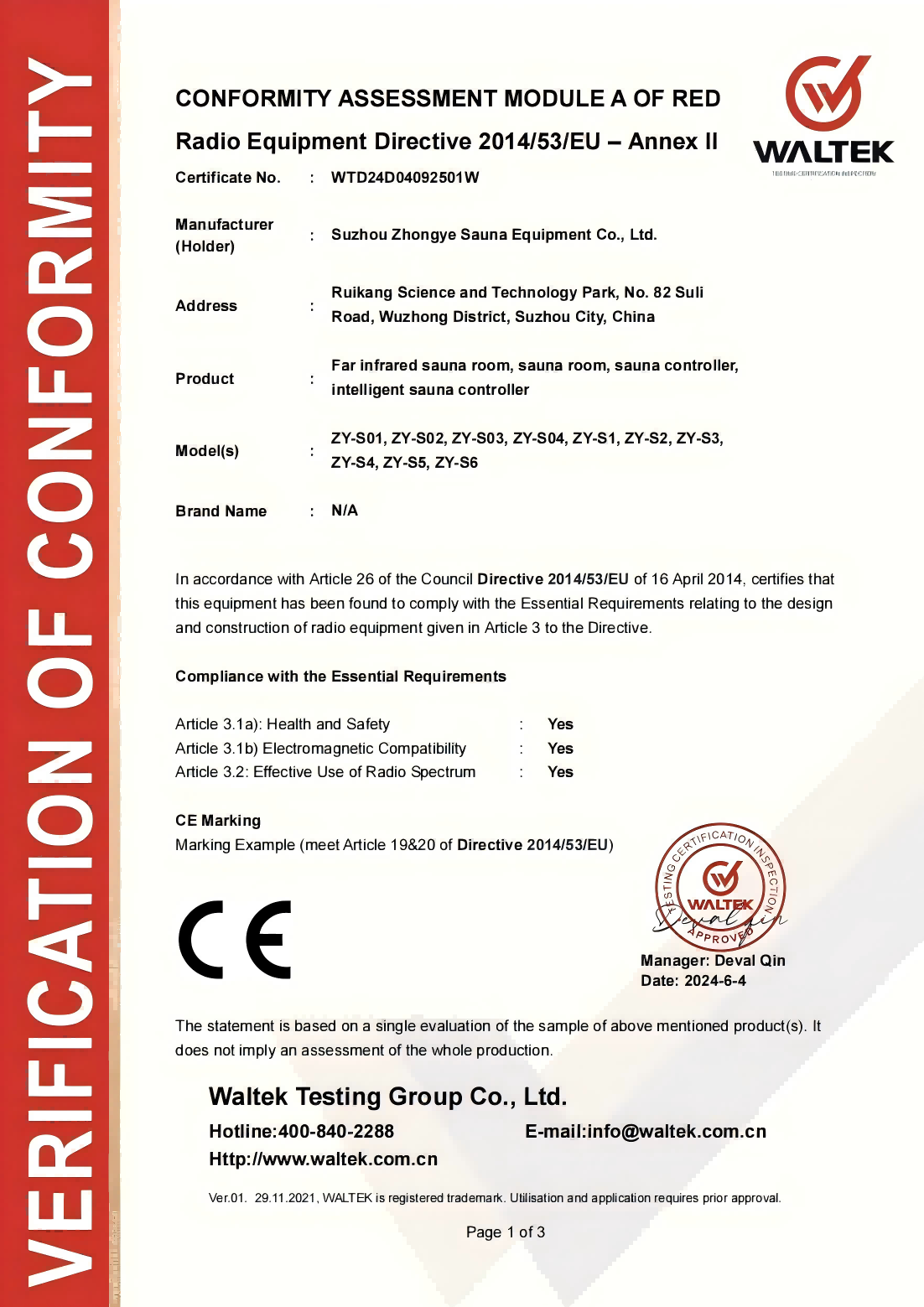 1 persona Sauna a infrarossi--- Qualifica del prodotto