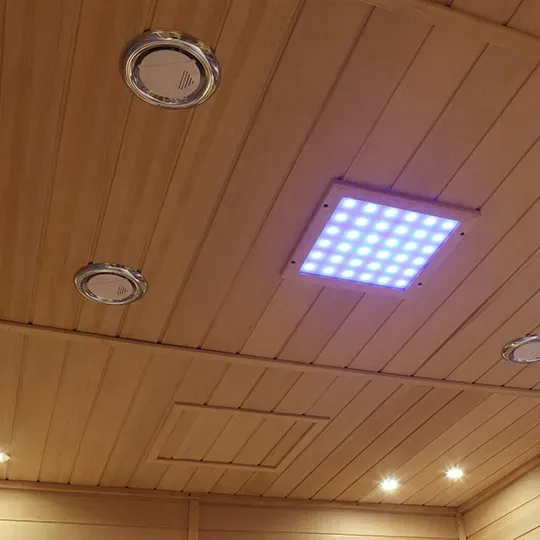 3. Esperienza di riscaldamento e illuminazione: i pannelli riscaldanti a infrarossi lontani distribuiti uniformemente forniscono un calore delicato e penetrante; le luci ambientali superiori e laterali (in toni caldi) aumentano il rilassamento ed evitano senso di soffocamento o oppressione