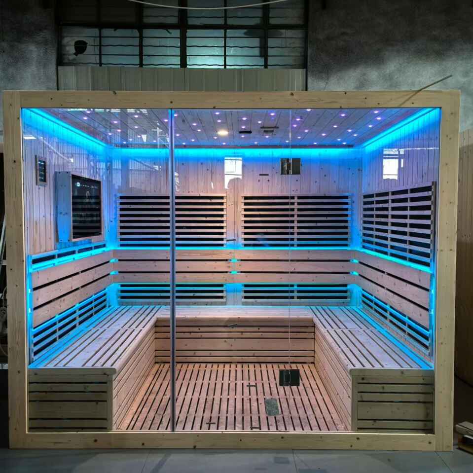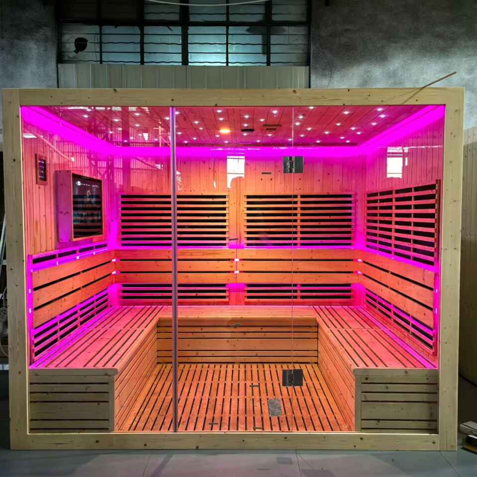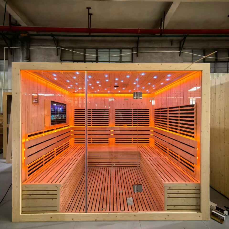 Stai cercando una soluzione di sauna spaziosa e lussuosa per il relax di gruppo, la socializzazione o l'uso commerciale? La nostra sauna per 5-10 persone in legno a infrarossi lontani con TV LCD è realizzata su misura per soddisfare le tue esigenze, integrando materiali di prima qualità, tecnologia avanzata e design incentrato sull'uomo.