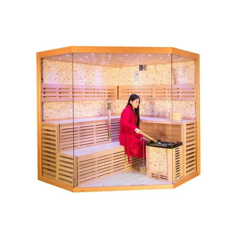 Questa sauna Hemlock con sistema di controllo intelligente in vetro su 3 lati integra materiali di prima qualità, design trasparente, controllo intelligente e garanzie di sicurezza, con una meticolosa lavorazione artigianale dai componenti principali agli accessori dettagliati. Sia che venga utilizzato come spazio relax privato a casa per esperienze di sauna professionali in mezzo a programmi fitti di impegni, o in ambienti commerciali come hotel, club SPA e centri fitness per fornire servizi di alta qualità, soddisfa perfettamente le diverse esigenze, creando per te un'esperienza di sauna confortevole, sana e professionale.