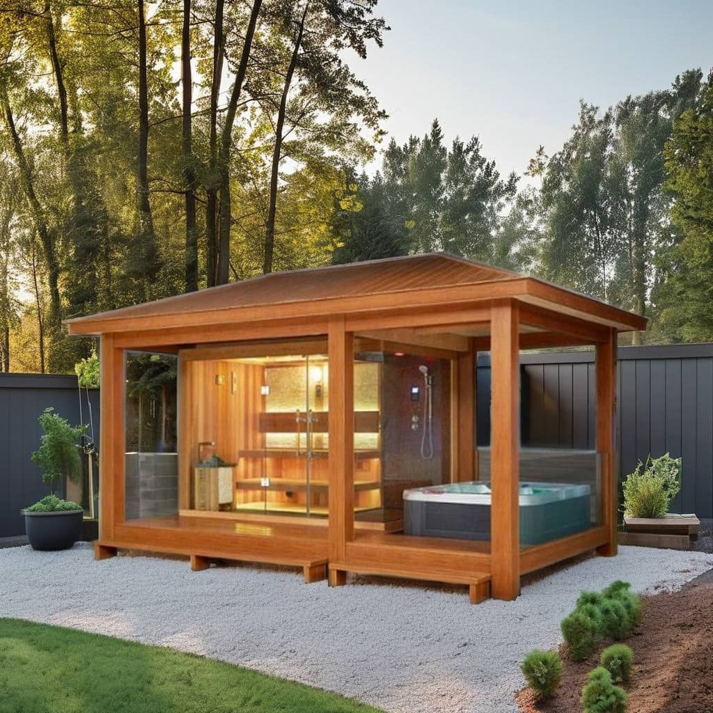 Questa sauna Jacuzzi integrata per esterni combinata - cortile/villa in vetro temperato in legno massello è una struttura ricreativa integrata progettata esclusivamente per spazi esterni come cortili e ville. Combina una sauna e una vasca idromassaggio all'interno di una struttura con telaio in legno massello, abbinata a recinzioni in vetro trasparente. Pur conservando una texture naturale, si fonde perfettamente con gli ambienti esterni (verde, superfici pavimentate), creando uno spazio relax privato per le famiglie. Le successive serie di immagini ne mostreranno il design integrato, i dettagli dei materiali, gli effetti di installazione e gli scenari di utilizzo da più angolazioni, presentando in modo intuitivo i vantaggi del prodotto.