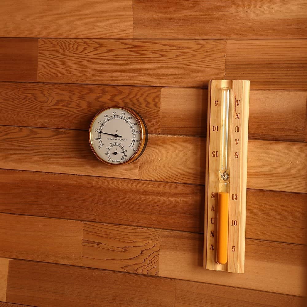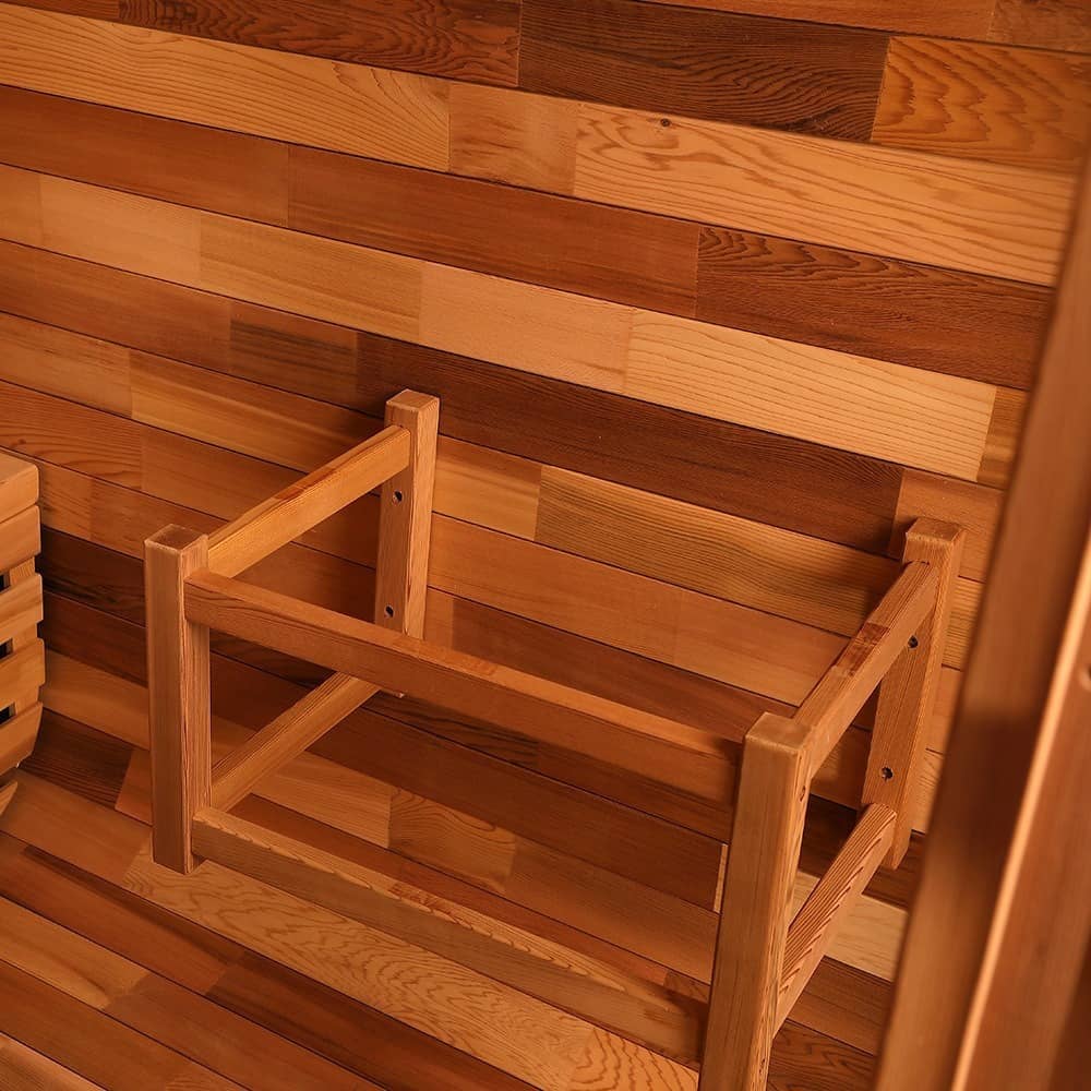 - Materiale principale: ovunque viene utilizzato legno massiccio resistente al calore di alta qualità (pareti, panche e telaio sono tutti in legno massiccio), trattato professionalmente per resistere all'umidità e al calore per adattarsi all'ambiente della sauna ad alta temperatura e umidità elevata.